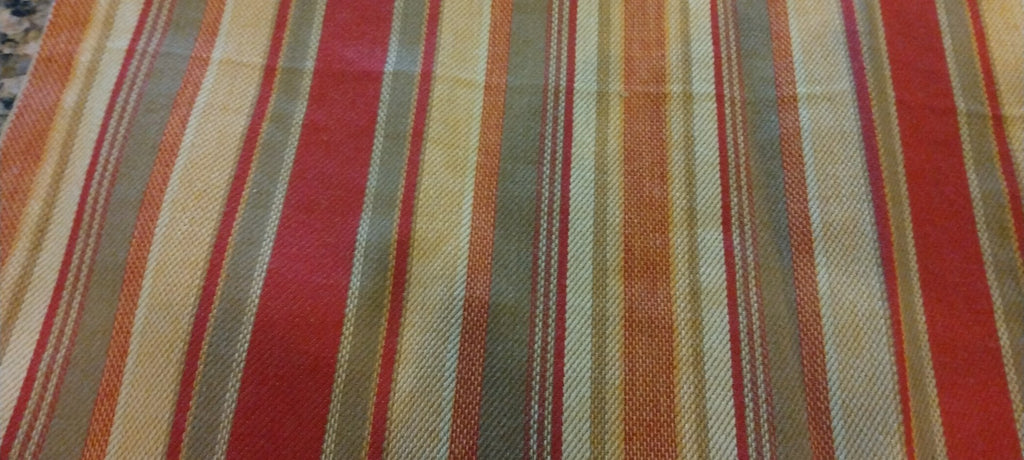 Bands of rich and luxurious colors conspire to give this design the look and feel of an Italian landscape. Rich bands of color including olive green, deep red, golden yellow, dijon, and tan. 100% cotton Also available in Tiers 24" & 36", Swag Pair 72" x 36", Fishtail Swag 145" x 25", and valance 72" x 14" Tabletop items include Runners, Napkins and Placemats.
