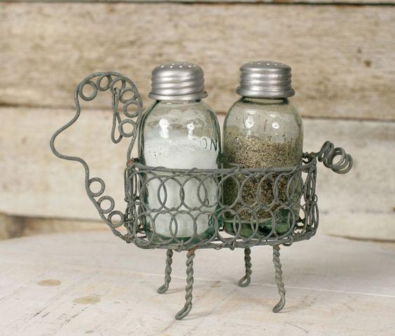 Metal wire sheep caddy with salt and pepper embossed shaker bottles