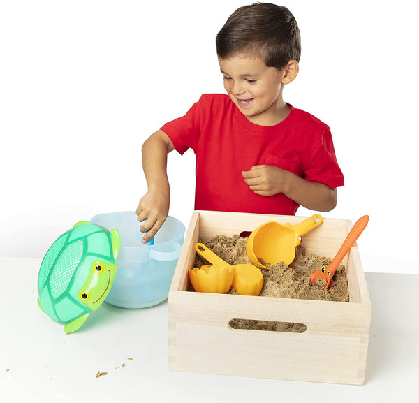 - PLAY AND LEARN: Our Melissa & Doug Sunny Patch Seaside Sidekicks Sand Baking Set encourages exploration and outdoor play. Mixing, sifting and baking theme presents an exciting twist on sand toys
