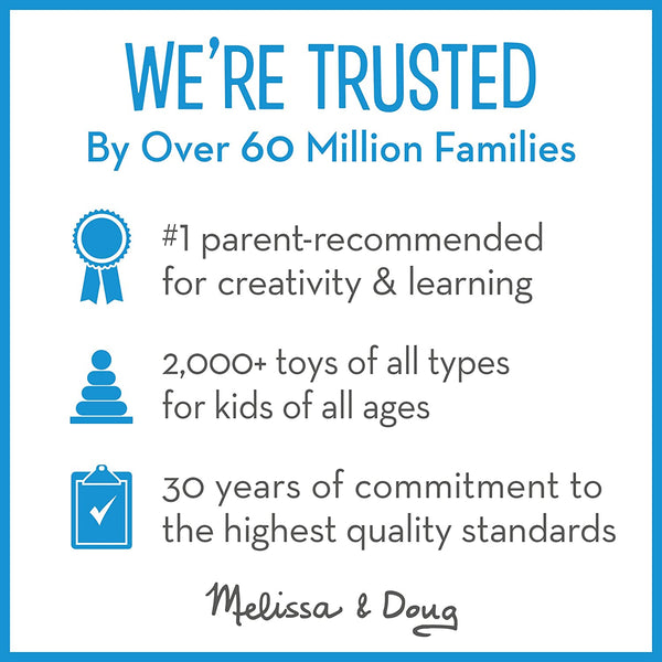 - “THE GOLD STANDARD IN CHILDHOOD PLAY”: For more than 30 years, Melissa & Doug has created beautifully designed imagination and creativity sparking products that NBC News called “the gold standard in early childhood play”