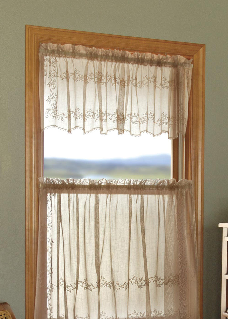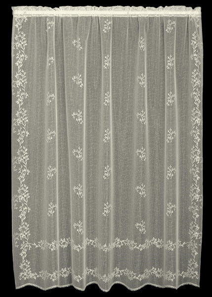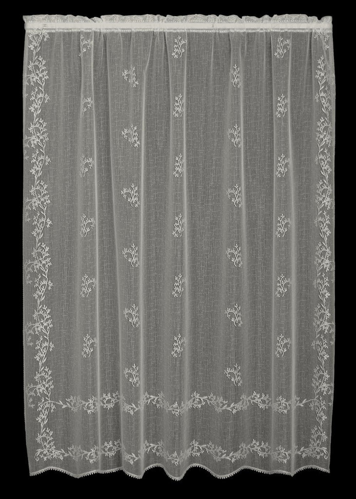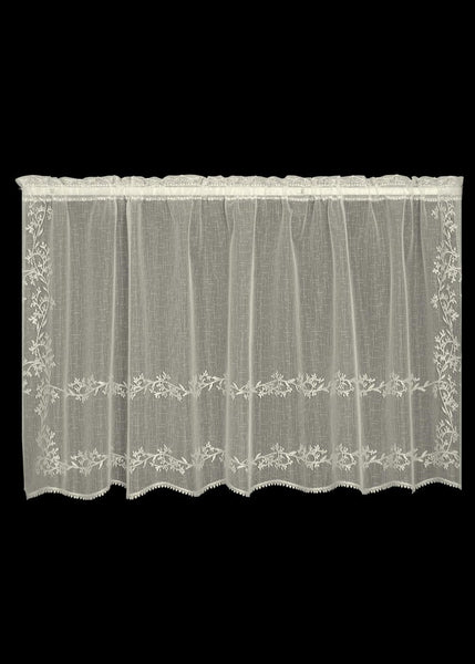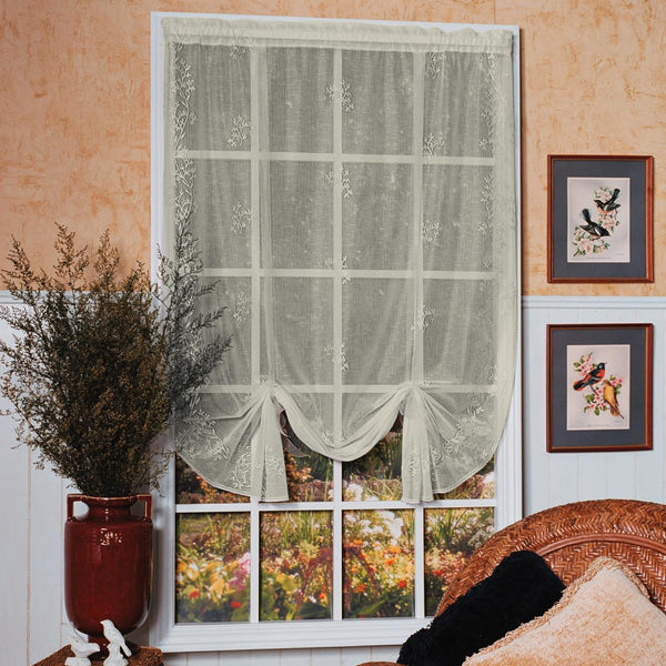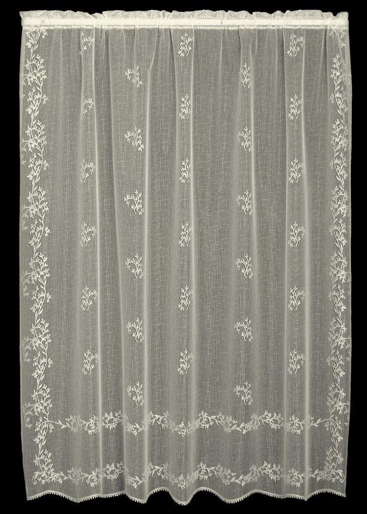 The delicate Sheer Divine swag pair lends a light and airy look as it gracefully frames your window. Crafted from the finest clipped lace, this collection of window treatments feature a stunning floral and vine pattern atop a linen like netting. Our lightweight sheer curtains are finished with scalloped edges on three sides. Made in U.S.A.