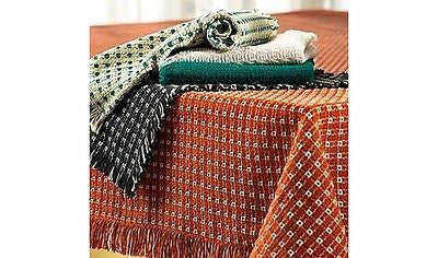 These classic tablecloths in the traditional Homespun pattern feature a simple beauty which stems from their heritage - the Appalachian Mountain homes of early America. Loomed with the finest USA grown cotton and made in the mountains of Vermont, each tablecloth is individually cut and hand fringed, resulting in a top quality tablecovering suitable for any decor or occasion. Machine wash in cold water, line dry. IMPORTANT: Because of the natural fiber and weave, tablecloth WILL SHRINK about 5-6 percent with a cold water wash and line dry. With machine drying, expect about 10-12 percent shrinkage. Please keep this in mind when determining which size to order. Contact seller for assistance. 10 sizes in 32 colors/patterns available