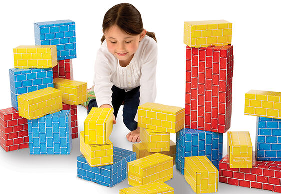 Young construction workers and architects will spend hours with these lightweight yet durable cardboard building blocks. This 40-piece set features three sizes of "bricks" for constructive imaginative play. Made of premium, extra-thick cardboard for strength, they are easy to assemble and feature a wipe-clean surface. The red blocks hold up to 150 pounds!
