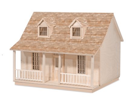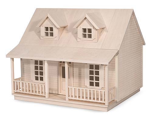 Cassie brings plenty of charm to your neighborhood! The second floor has two dormers with gable windows while the first floor features a transom-lit door and three-over-four windows for well-lit living spaces. An open back makes designing and decorating easy. This superior-quality dollhouse comes as natural, unpainted wood, and is ready to be assembled, shingled and decorated by its owner. Shingles and paint not included in kit. 1:12 scale