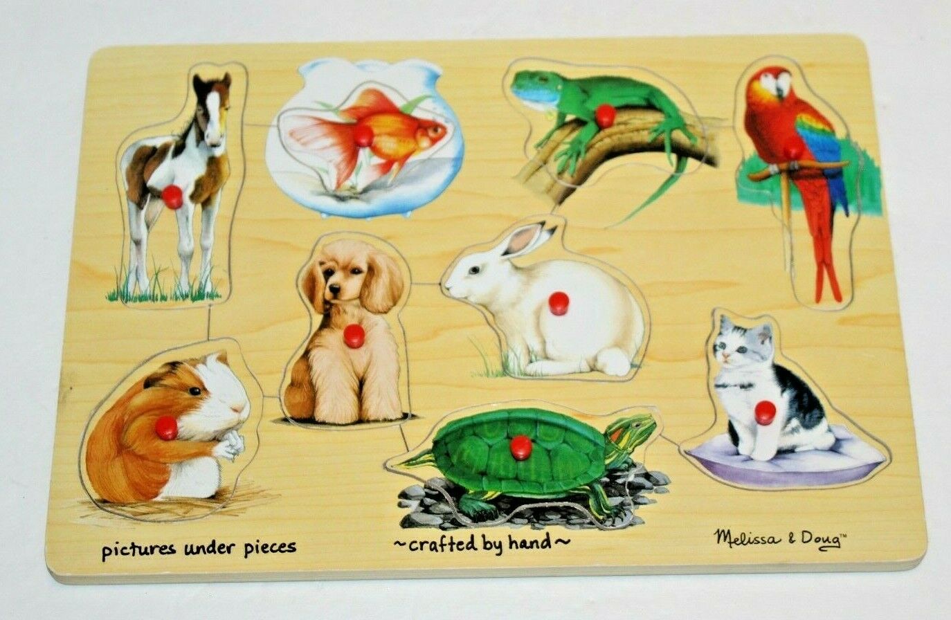 Melissa and Doug Pets Easy Grip Peg Puzzle Wooden 000772000871 9pc Ages 2+
