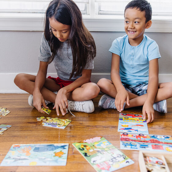 Melissa & Doug, an award-winning manufacturer, produces high-quality wooden jigsaw puzzles and thick, durable cardboard jigsaw and floor puzzles for all stages of development, for toddlers (3-4 piece fuzzy and jumbo-knob puzzles), pre-school kids (sound puzzles, peg puzzles, floor puzzles and more) all the way to pre-teen kids and beyond (up to 500-piece jigsaw puzzles).