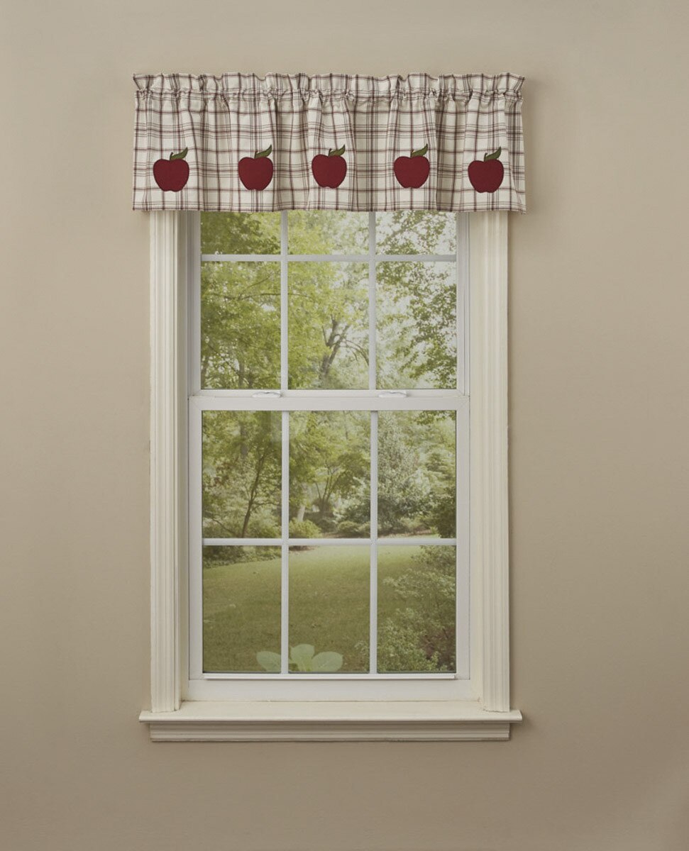 Park Design Apple Orchard Applique Lined Window Valance 60 x 14 Inches Ivory, Dark Red, Green, Tan Plaid
