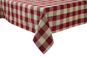 The Wicklow Garnet Table Cloth offers a sweet, uncomplicated look! The warm garnet & tan blends beautifully to provide a classic farmhouse check that complements any country home design!