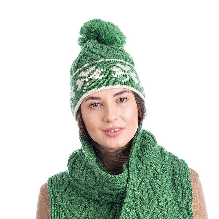 Shamrock Aran Wool Hat One Size Made in Ireland